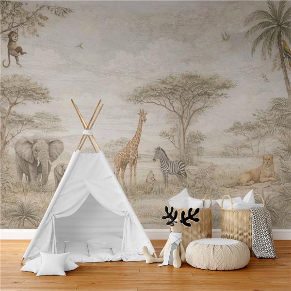 Safari Sevimli Hayvanlar Çocuk Odası Duvar Kağıdı