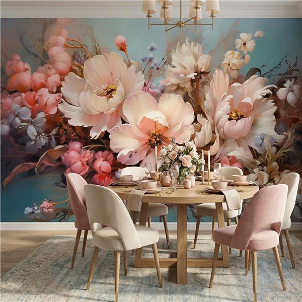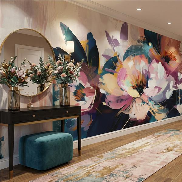 Sanatsal Çiçek Desen Duvar Kağıdı